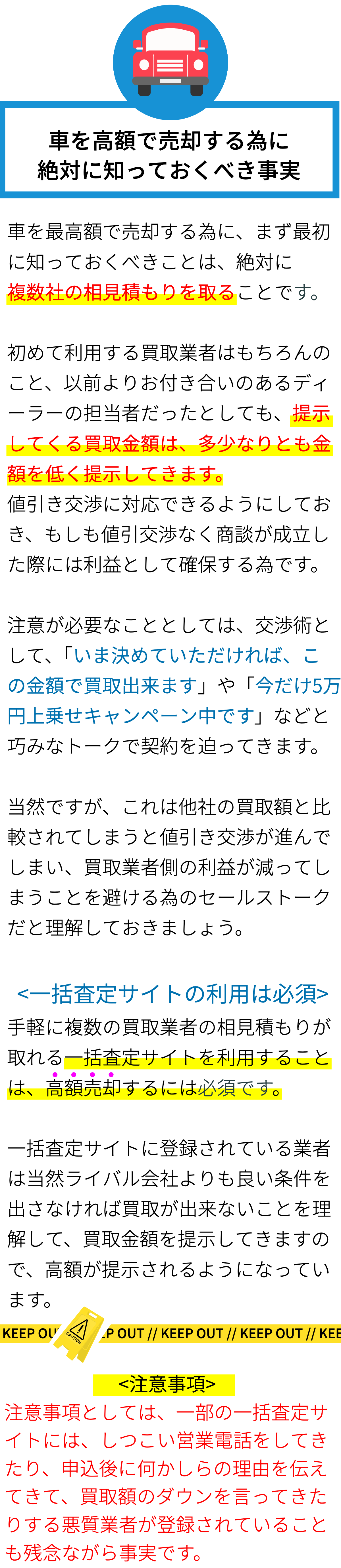 便利な一括査定ですが、査定額にばらつきが出やすい点や、連絡が集中して対応が混雑しやすい点には留意が必要です。また、個別交渉を希望する場合は、見積もり後の対応が鍵となります。